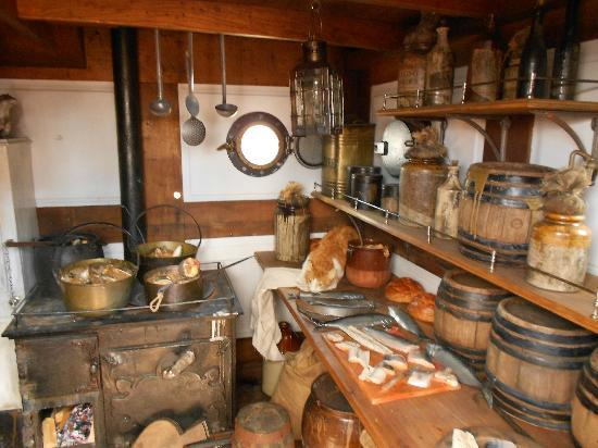 The original zoom version game the players could go up to the crow’s nest of the ship. Because technological limitations on Black Skull was chosen to have a kitchen inside the ship as substitute. For this SET was used the kitchen from the Dunbrody Famine Ship Experience as reference. The exact photo reference used is the following: