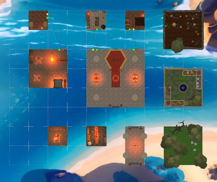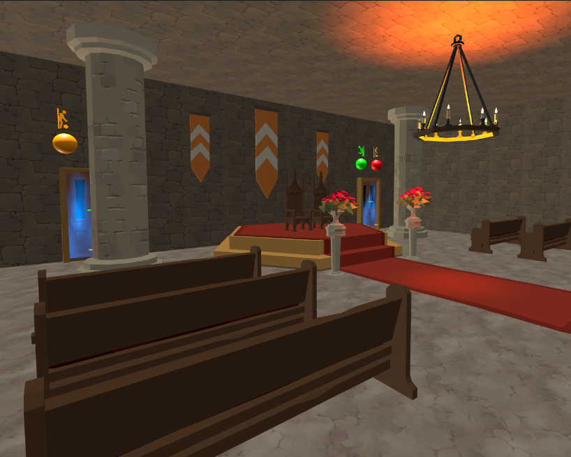 This is a smaller group of made by 3x1 SETs placed in a line. Both SETs end are the same and but mirrored and in the middle there’s a very simple SET with just one chandelier. The entrances on this was adapted, by removing the stone pillars and used used as entrance for the throne room on all variations.