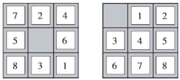 O brinquedo 8-puzzle, é um problema brinquedo, consiste de um tabuleiro 3x3 com oito números e um espaço em branco. Apenas os tiles adjacentes ao espaço em branco podem ser movidos. O objetivo final é dado um estado inicial, colocar todos os tiles na ordem correta com o espaço em branco na primeira posição da matriz.