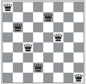 - Teste de objetivo: Todas as 8 rainhas estão no tabuleiro, e não conseguem se atacar.