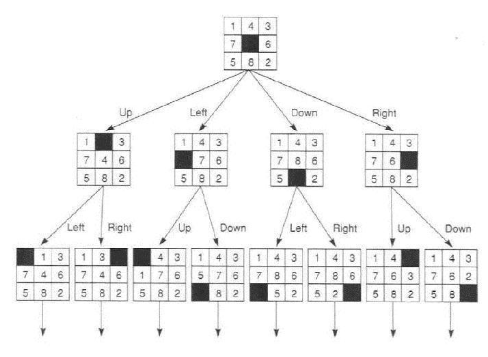 - Estados: A descrição de um estado é determinada pela localização de cada um dos 8 tiles e o espaço em branco.