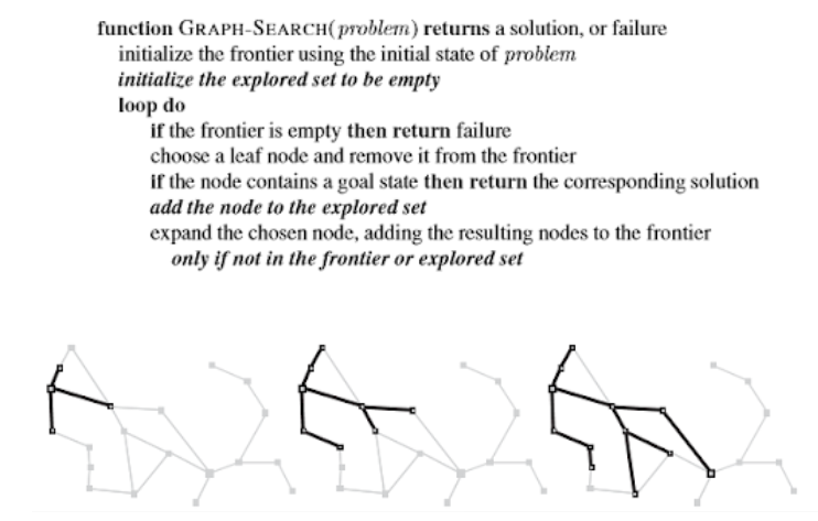 Alguns problemas, existem estados que são redundantes e que podem levar a árvore infinita e portanto uma busca infinita. Em alguns casos é possível evitar redundâncias dependendo de como o problema é definido. Entretanto, em alguns problemas isso é impossível como nos puzzles em que uma ação é reversível ou ainda no pathfiding. Uma forma encontrada para evitar os caminhos redundantes é a utilização de uma estrutura de dados para guardar os estados já visitados: explored set (alguns autores também chamam de closed list). Para cada novo estado é verificado se ele pertence a esse conjunto, se sim ele é descartado automaticamente ao invés de serem adicionados na fronteira. A partir disso um novo algoritmo é gerado: