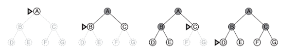 O método de busca em largura sempre busca expandir o estado mais profundo da fronteira da árvore de busca. A busca sempre procede para o nível mais profundo da árvore de busca até que os nós não tenham mais sucessores. Assim que os nós são expandidos. Assim que os nós são expandidos, eles são removidos da fronteira e a busca recomeça no próximo nó mais profundo que ainda tenha estados alcançáveis.