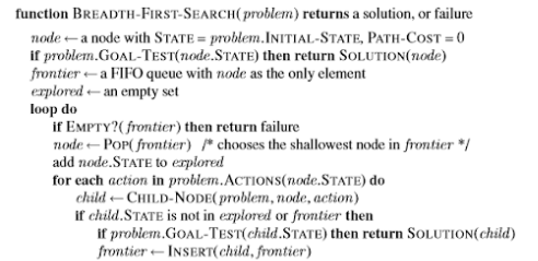 A busca em largura, também conhecido como breadth-first search, é uma estratégia bastante simples em que o primeiro nó é o expandido, e então seus sucessores são expandidos em sequência. Em geral, todos os nós são expandidos em uma determinada profundidade na busca, antes de se começar o processo de expansão do próximo nível. Para a construção dessa busca é utilizada uma fila para os nós da fronteira. Todos novos estados são colocados no final desta fila e os nós presentes neste nível.