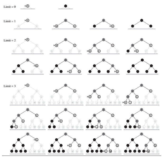 - Completude: Com a adição dessa profundidade limite, nós adicionamos a possibilidade de incompletude se o estado objetivo estiver mais profundo do que o pesquisado até então.