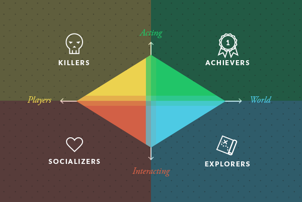 The Killers are similar to Achievers in the way that they get a thrill from gaining points and winning status too. What sets them apart is that Killers want to see other people lose. They are competitive, and winning is what motivates them. You expect this type of personality to be common, but Bartle’s research suggest that only a small number of players are Killers, less than 1% to be precise.