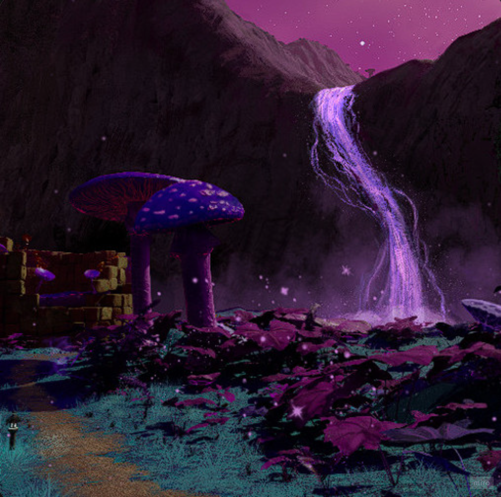 Its the first landmark that the player visit inside the Mushroom Forest. I did some puzzles prototypes for the team for this stage. Since I was without computer the prototype was made physical just so I could explore how the game objects would be interacting.