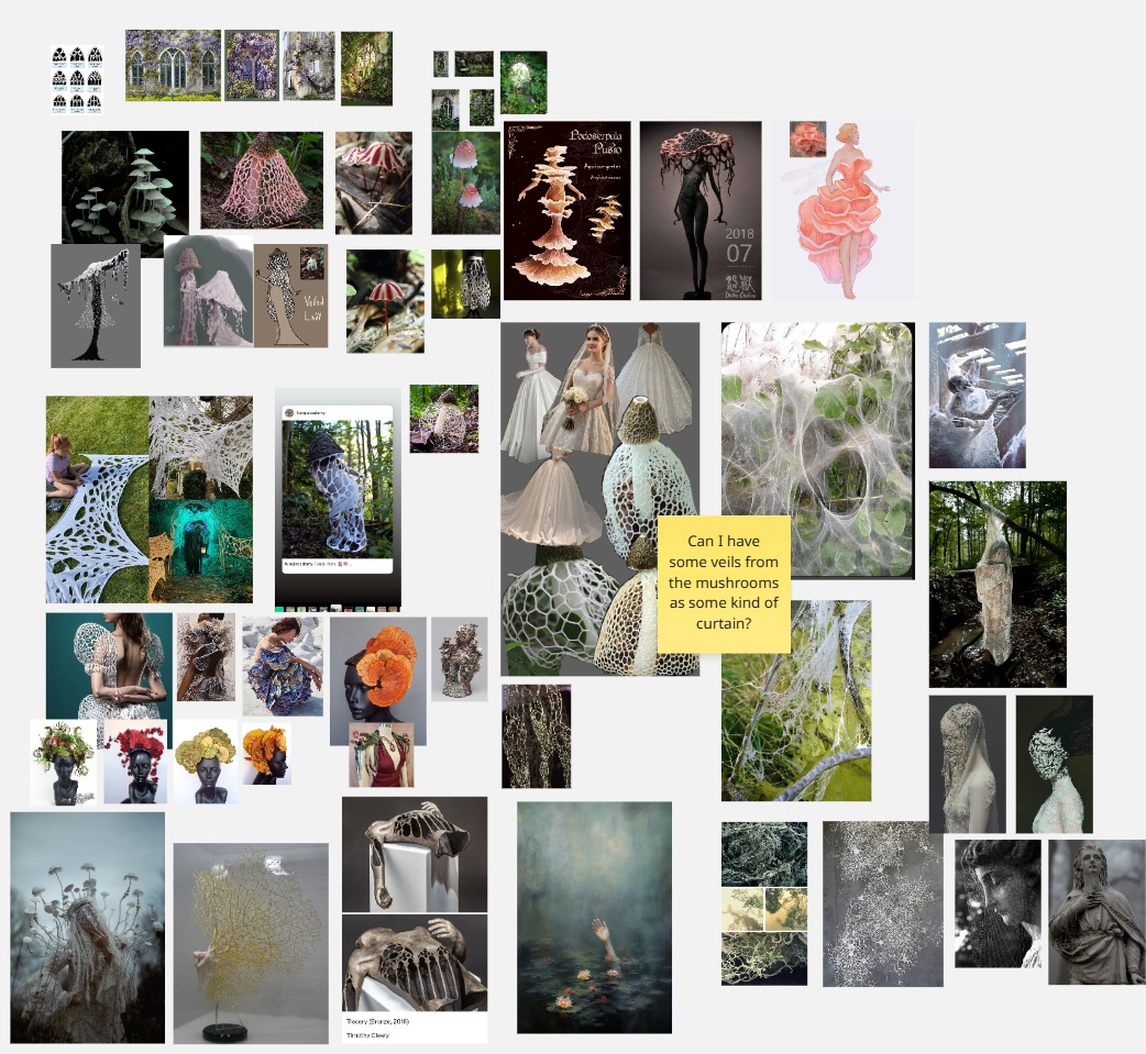 We had a selection of mushrooms already made for this area that we wanted to use. I also noticed that one of them, had a very beautiful laced pattern that was very feminine and I wanted to bring in this area.