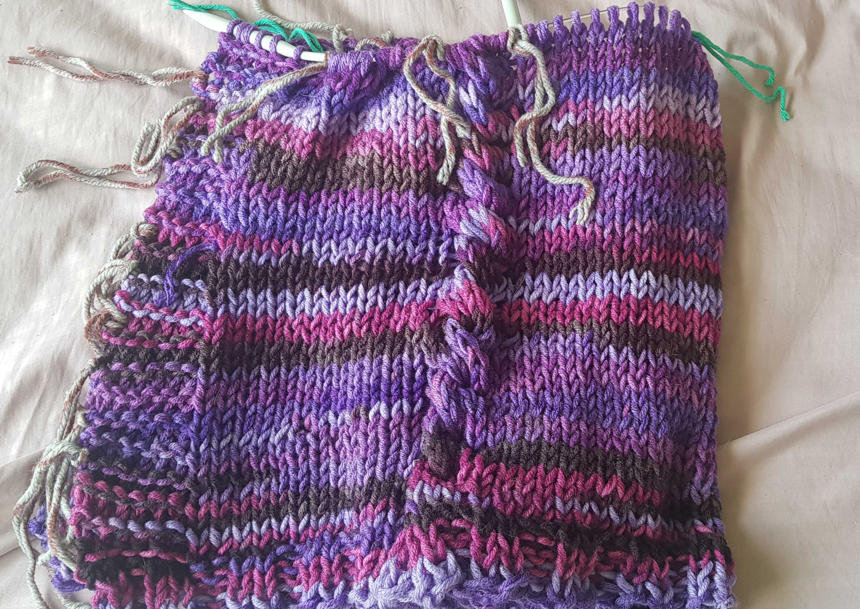 Em Julho de 2025 comecei Ă fazer um colete roxo de tricĂ´.